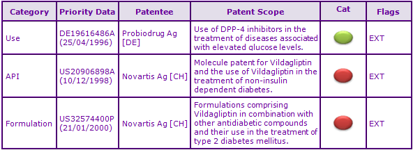 Figure 2: Key Patent Indicator; the most significant patents protecting products containing Vildagliptin