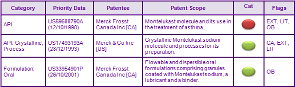 Figure 2: Key Patent Indicator; the most significant patents protecting products containing Montelukast
