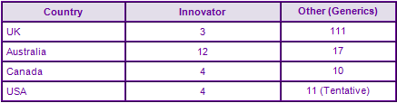 Figure 4: Marketing Authorisations for products containing Montelukast in Key Countries