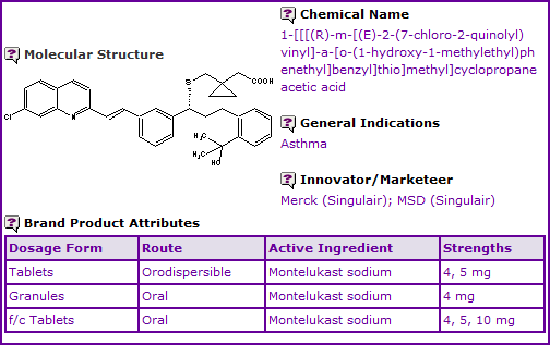 Figure 1: General Information table for Montelukast