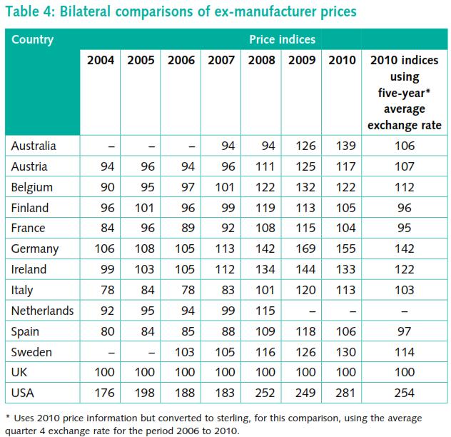 Most of the bodies trying to control costs are also fond of producing evidence to prove that they are actually doing so. The UK is no exception and the Department of Health recently published a report showing that average British Pharma prices are now amongst the lowest in Europe, demonstrated in a table at the end of the report.
