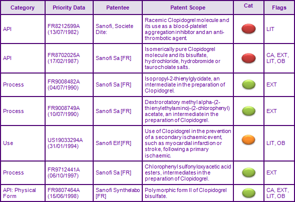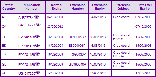 Figure 2: Key Patent Indicator; the most significant patents protecting products containing Clopidogrel