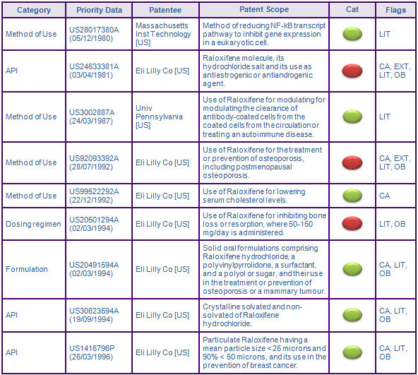 Figure 2: Key Patent Indicator; Key patent families protecting Raloxifene products