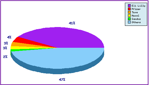 This figure is a representation of patentees who have filed the most patent families for this INN (Figure 5). Note that Lilly the innovator has 41% of the filing relating to Raloxifene and the prominence of the generic companies Teva, Hexal and Sandoz in the top 5. The appearance of Pfizer in the top 5 can be attributed to general patenting relating to its competing SERM products, Fablyn® (Lasofoxifene) and Conbriza® (Bazedoxifene).