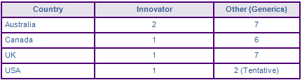 Figure 4: Marketing Authorisations for products containing Zanamivir in Key Countries