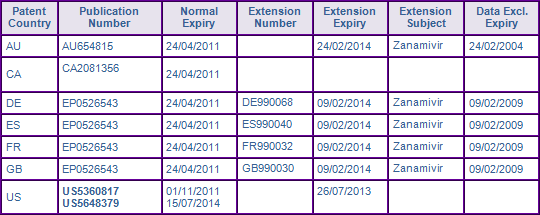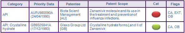 Figure 2: Key Patent Indicator; the most significant patents protecting products containing Zanamivir