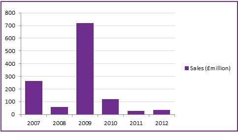 Global sales figures reflect the fluctuation in demand due to government stockpiling and predicted risk of influenza in a given season (Figure 5). This is strongly reflected in the 2009 sales, which generated £720 million as a result of the global pandemic threat of influenza A H1N1 (swine flu).