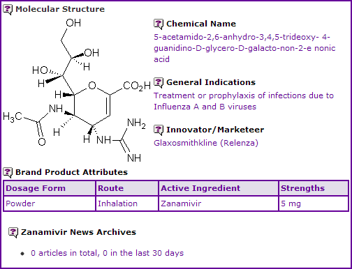 The following data is extracted from GenericsWeb Pipeline Patent Intelligence and is intended to give a brief outline of factors affecting the potential launch of a generic Zanamivir product for GlaxoSmithKline’s (GSK) antiviral flu treatment Relenza®. Global sales in 2011 reached £27 million, a 79% decrease from the previous year due to the loss of pandemic flu sales.