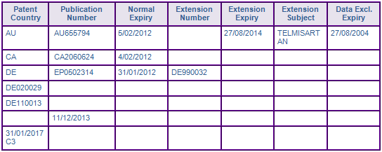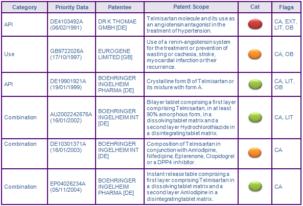 Figure 2: Key Patent Indicator; the most significant patents protecting products containing Telmisartan
