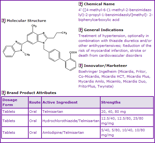 Figure 1: General Information table for Telmisartan