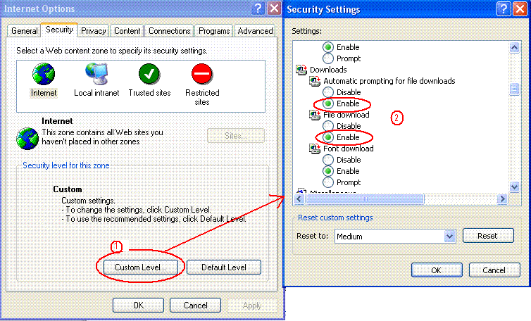 3. Make sure 'enable' is selected for the different download options on the new window.