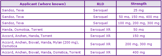 The following data is extracted from GenericsWeb Pipeline Patent Intelligence and is intended to give a brief outline of factors affecting the potential launch of generic equivalents of Quetiapine, a top-selling thiazepine molecule indicated for the treatment of bipolar disorder, depression, manic episodes and schizophrenia.