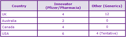 Tentative FDA approvals for generic immediate-release oral tablet formulations have been granted to Ranbaxy and Sandoz. Several Paragraph IV filings have been identified (Impax, Mylan, Teva, Sandoz), relating to both the immediate-release and sustained-release formulations. In the UK, several generic marketing authorisation holders have been identified (Caduceus, Hexal, Ratiopharm, Sandoz and Teva) however none relates to the sustained-release formulations (See Figure 4).