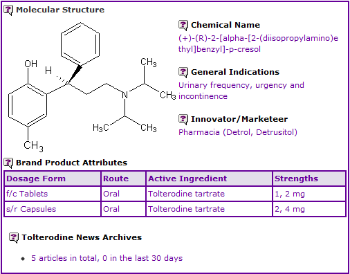 Figure 1: General Information table for Tolterodine